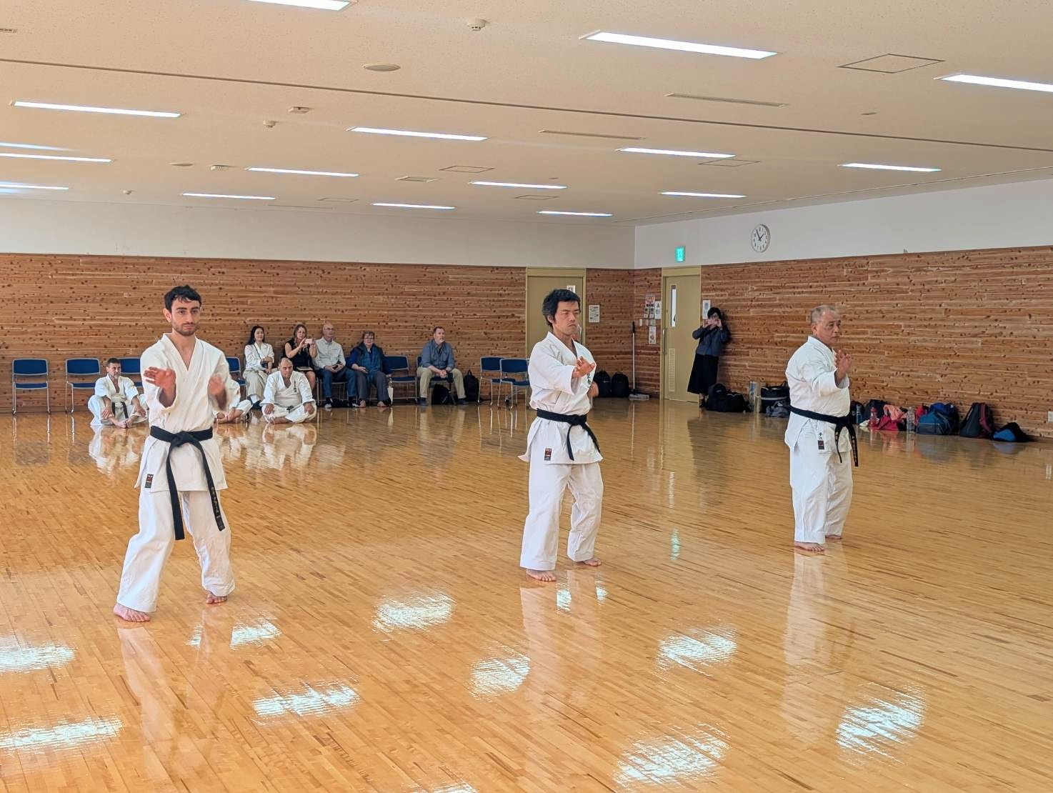 六段以上の高段者審査では、「三戦」「指定型:十三」「指定型:三十六」の審査が行われました。