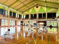 昼食の後は国頭村立安田小学校の体育館をお借りし、児童の皆さんとともに空手の交流稽古を行いました。