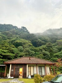 ここは沖縄の古民家を思わせる赤瓦の屋根とシーサーがあり、畳に布団を敷いて寝るスタイルの宿泊施設です。